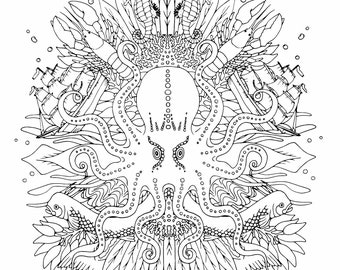 Coloring Book Page Kraken Etsy Uk